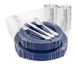 Set de Vajilla Fina para Fiesta de color Azul con grabado color Plata 175 Pz.