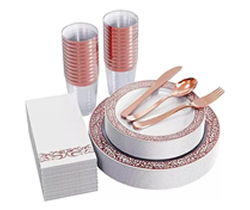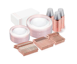 Vajilla Plástica Reutilizable de 175 Piezas. Platos Premium Alta Resistencia SIN BPA (ROSA ORO)