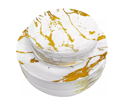 Vajilla Plástico Mármol Elegante Y Reutilizable con Borde Dorado de 175 piezas para 25 Personas