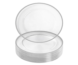Platos de Plástico Elegantes y Reutilizable con Borde PLATEADO 50 Piezas