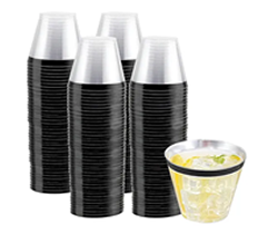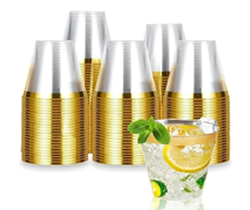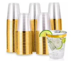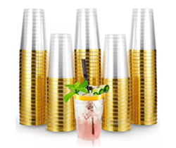 Vasos Elegantes de Plástico Transparente con Borde Dorado de 9 oz 100 piezas
